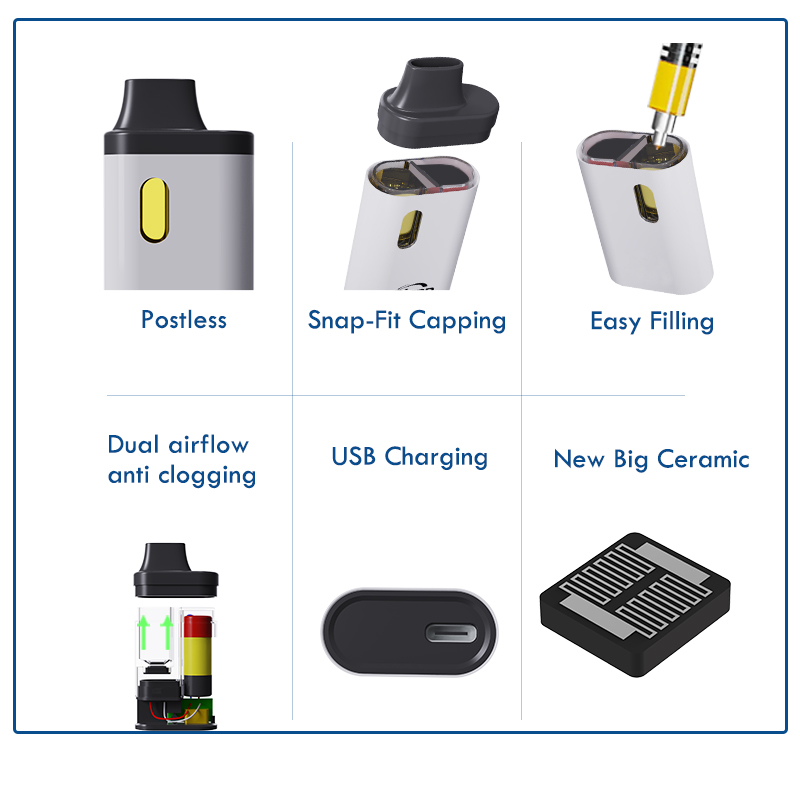 Anpassade delta 8 delta 9 thc engångsbar-ren smak, smart design. Speciellt byggd för både tunna och tjocka cannabisoljor, denna mini box-stil vape-enhet har en postless design och en stor platt film keramisk spole, som levererar oöverträffad smakrenhet och terpen-konservering. Med slät, låg temperaturuppvärmning fångar den den fulla smaken av premiumoljor som levande harts, THCA, destillat, kolosnät och blandningsoljor. Compact men ändå kraftfull, enheten stöder anpassade oljefönster och varumärke med full yta, vilket gör det till en perfekt passform för framtänkande cannabisvarumärken. Konsekvent prestanda. Djärv identitet.